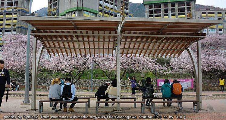 1. ทางรถไฟดอกซากุระคยองฮวา – Gyeonghwa Station เป็นหนึ่งในจุดชมซากุระที่สวยอันดับต้นๆของเกาหลีเลยก็ว่าได้ โดยสามารถมองเห็นรถไฟที่วิ่งมาจอดที่สถานีพร้อมกับวิวอุโมงค์ดอกซากุระที่เรียงรายกันอยู่เต็มทั้งสองข้างทางในช่วงประมาณต้นเดือนเมษายน จึงทำให้ผู้คนนิยมมาท่องเที่ยวถ่ายภาพขณะที่รถไฟกำลังวิ่งผ่าน